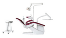 This treatment chair is the complete version of the Optimal line. It is made for orthodontics and surgery clinics that need more comfort, more control, and more working space. It has 7 memory positions and can be adjusted even for very tall patients over 200 cm. The rotary cuspidor matches the upholstery color and gives the unit a clean look.